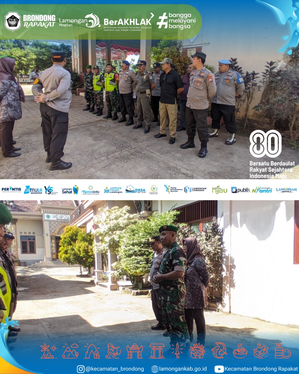 Jum’at, 12 September 2025, Forkopimcam Kecamatan Brondong melaksanakan apel bersama dalam rangka persiapan mediasi antara perwakilan masyarakat Desa Sedayulawas dengan PT QL Hasil Laut. Apel ini dipimpin oleh Plt. Camat Brondong, Nurul Khumaidah, S.H., M.M., dengan diikuti jajaran TNI, Polri, dan Satpol PP sebagai bentuk kesiapan menjaga keamanan, ketertiban, serta menciptakan suasana kondusif selama proses mediasi berlangsung.