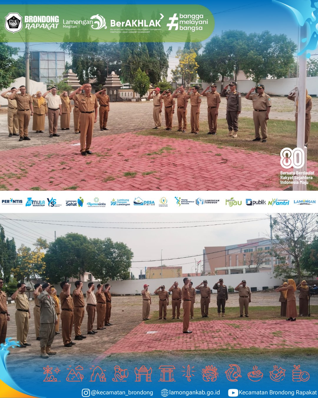 Senin, 20 Oktober 2025 , telah dilaksanakan Apel Senin Pagi Organisasi Perangkat Daerah (OPD) Kecamatan Brondong yang berlangsung lancar, bertempat di lingkungan kantor Kecamatan Brondong, Lamongan. Apel ini dihadiri oleh para pegawai OPD Kecamatan Brondong sebagai kegiatan rutin mingguan yang bertujuan untuk meningkatkan disiplin dan koordinasi antar pegawai, sebagaimana tertera dalam laporan dan visual yang diunggah oleh akun resmi kecamatan tersebut.
