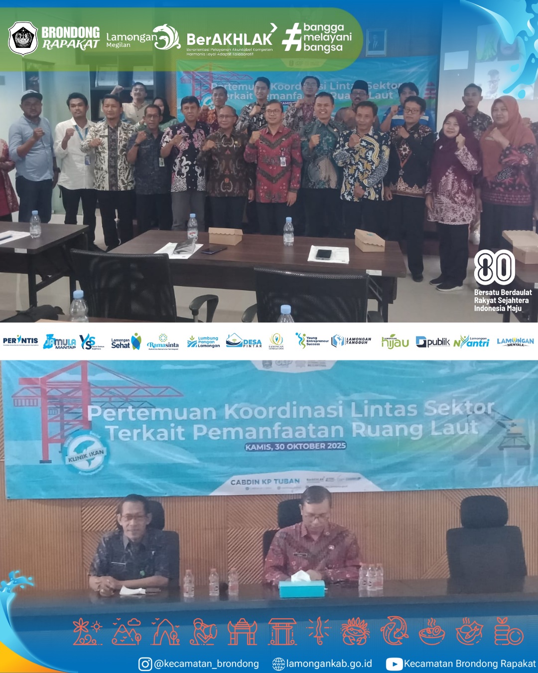 Kamis, 30 Oktober 2025, dilaksanakan pertemuan koordinasi lintas sektor yang membahas pemanfaatan ruang laut secara berkelanjutan. Kegiatan ini diikuti oleh berbagai unsur instansi terkait, baik dari pemerintah daerah maupun sektor kelautan dan perikanan, yang berlokasi di dinas kelautan dan perikanan Tuban. Tujuan pertemuan ini adalah untuk menyatukan persepsi dan langkah strategis dalam pengelolaan potensi laut agar tetap produktif namun tetap memperhatikan aspek kelestarian lingkungan. Melalui koordinasi ini diharapkan tercipta sinergi antarsektor dalam mendukung kebijakan pengelolaan sumber daya laut yang berdaya guna dan berkelanjutan bagi kesejahteraan masyarakat pesisir.