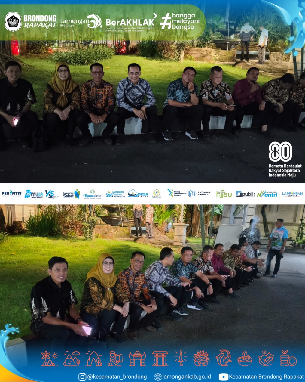 Rabu, 26 November 2025, dilaksanakan Gathering Forkopimda bersama Keluarga Besar Pemerintah Kabupaten Lamongan di Pendopo Lokatantra Kabupaten Lamongan, yang turut dihadiri Ibu Camat Brondong Nurul Khumaidah, SH, MM. sebagai wujud dukungan dan sinergi pemerintah kecamatan dengan pemerintah kabupaten. Kegiatan silaturahmi ini dimaksudkan untuk mempererat kebersamaan, menyamakan visi, serta menguatkan koordinasi antara jajaran Forkopimda dan seluruh perangkat daerah dalam menjaga kondusivitas wilayah serta meningkatkan kualitas pelayanan kepada masyarakat Lamongan.