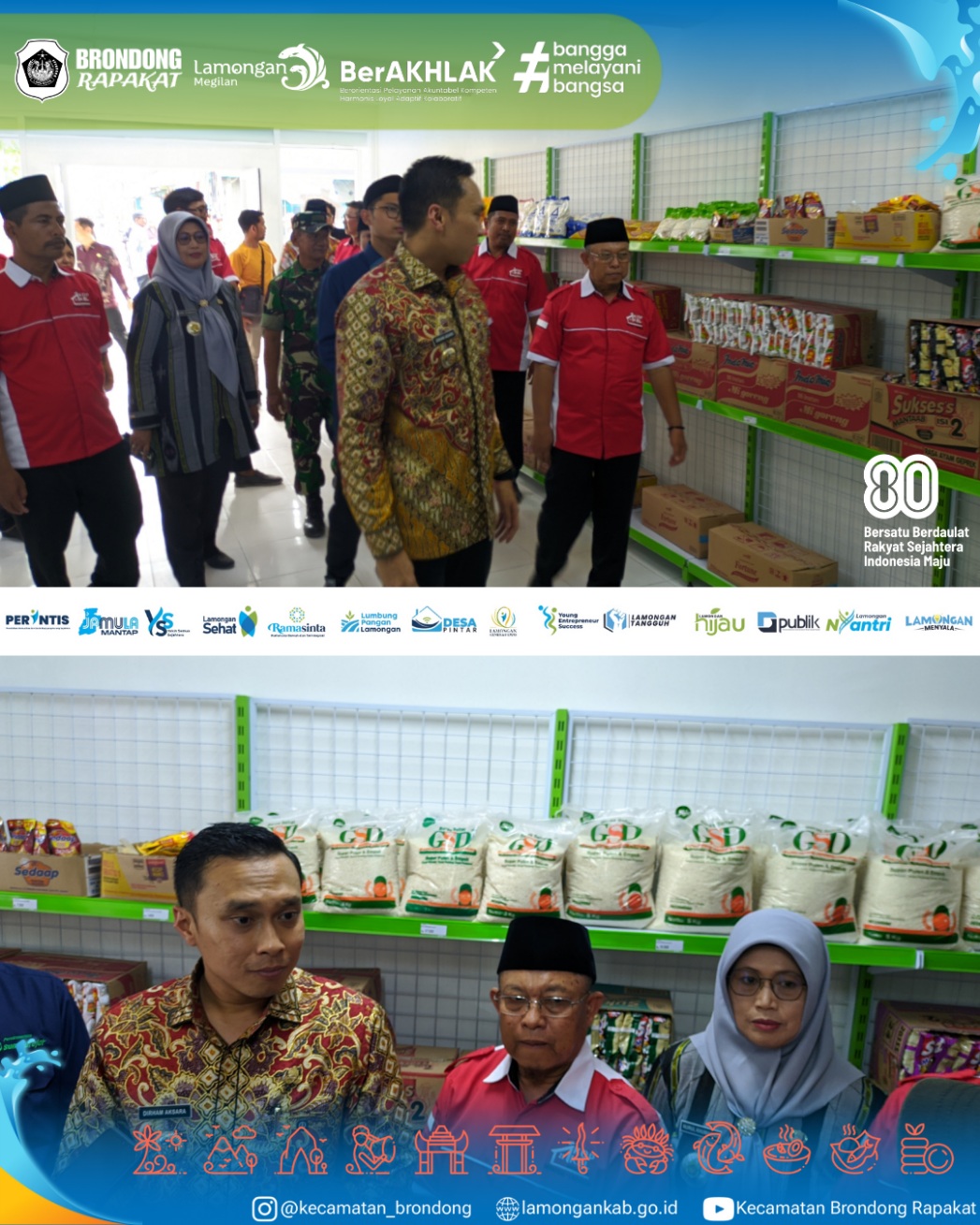 Kamis, 27 November 2025, Wakil Bupati Lamongan Dirham Akbar Aksara, S.T., B.Eng., M.Sc., memborong sembako di gerai Koperasi Kelurahan Merah Putih Brondong sebagai bentuk dukungan nyata terhadap penguatan ekonomi kerakyatan dan keberlangsungan koperasi di tingkat kelurahan. Kehadiran dan partisipasi beliau dalam berbelanja langsung di gerai sembako tersebut diharapkan memotivasi masyarakat untuk semakin memanfaatkan layanan koperasi, sekaligus mendorong tumbuhnya kemandirian ekonomi dan kesejahteraan warga di Kecamatan Brondong.