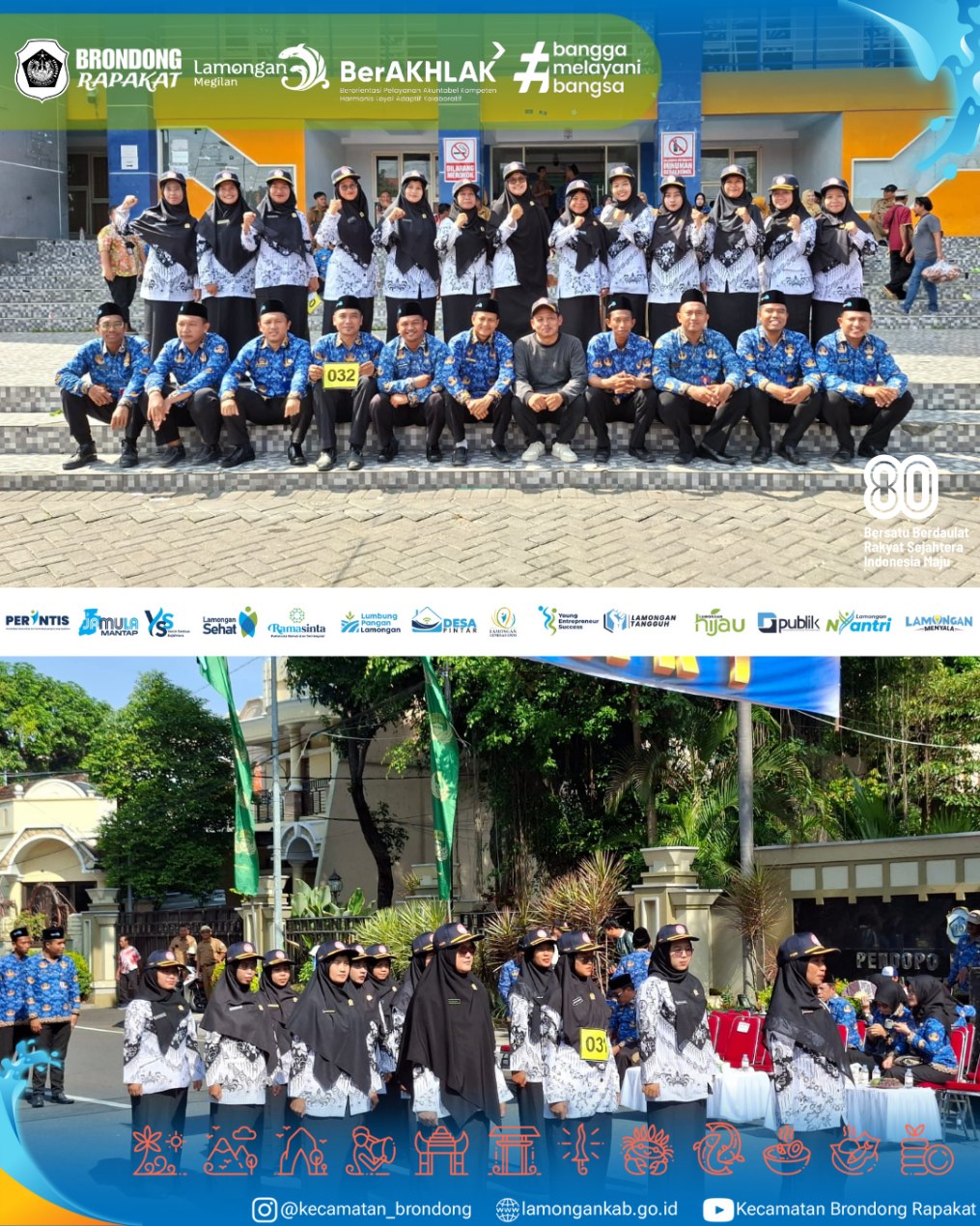 Selasa, 2 Desember 2025 di Pendopo Lokatantra Kabupaten Lamongan, perwakilan Kecamatan Brondong mengikuti Lomba Gerak Jalan HUT Korpri ke-54, yang diwakili oleh Korwil Pendidikan Kecamatan Brondong sebagai peserta resmi, dimana kegiatan ini diselenggarakan sebagai bentuk peringatan dan semangat kebersamaan aparatur negara, serta dilaksanakan dengan penuh antusiasme melalui koordinasi dan persiapan yang matang agar mampu membawa nama Kecamatan Brondong dengan baik dalam ajang tahunan tersebut.