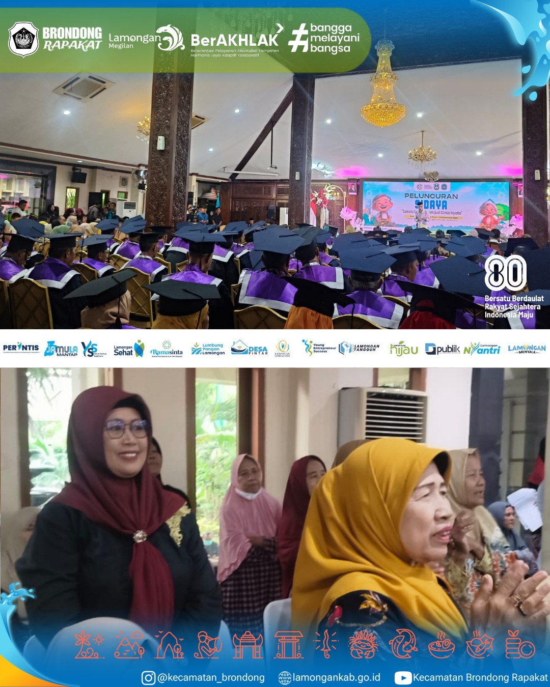 Kamis, 4 Desember 2025 di Pendopo Lokatantra Kabupaten Lamongan, berlangsung Launching SIDAYA Tingkat Nasional yang menjadi topik utama kegiatan sekaligus momentum penting bagi penguatan layanan kesejahteraan masyarakat, dan acara ini turut dihadiri Camat Brondong sebagai perwakilan kecamatan. Pelaksanaan launching tersebut disertai Gelar Dagang Lansia Entrepreneur sebagai apa yang ditampilkan, yakni wadah bagi para lansia untuk mempromosikan makanan, minuman, dan kerajinan khas Lamongan sebagai bentuk dukungan terhadap Gerakan “Ayo Ditumbasi!”.