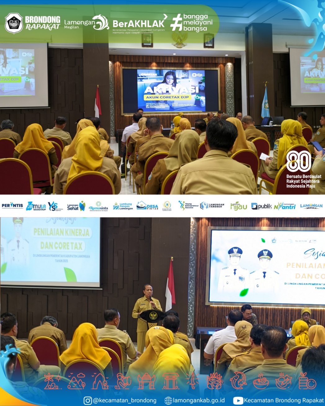 Pada Selasa, 9 Desember 2025 di Ruang Aula Gajah Mada Kabupaten Lamongan, berlangsung sosialisasi Penilaian Kinerja Perangkat Daerah dan sosialisasi CoreTax dari KPP Pratama Lamongan, yang diikuti para perwakilan OPD sebagai langkah pemerintah meningkatkan akuntabilitas dan optimalisasi pelayanan, di mana kegiatan ini dipimpin langsung oleh Sekretaris Daerah yang menekankan pentingnya pemahaman regulasi sekaligus penyelarasan sistem perpajakan digital agar pelaksanaan tugas di setiap perangkat daerah dapat berjalan efektif dan terukur.