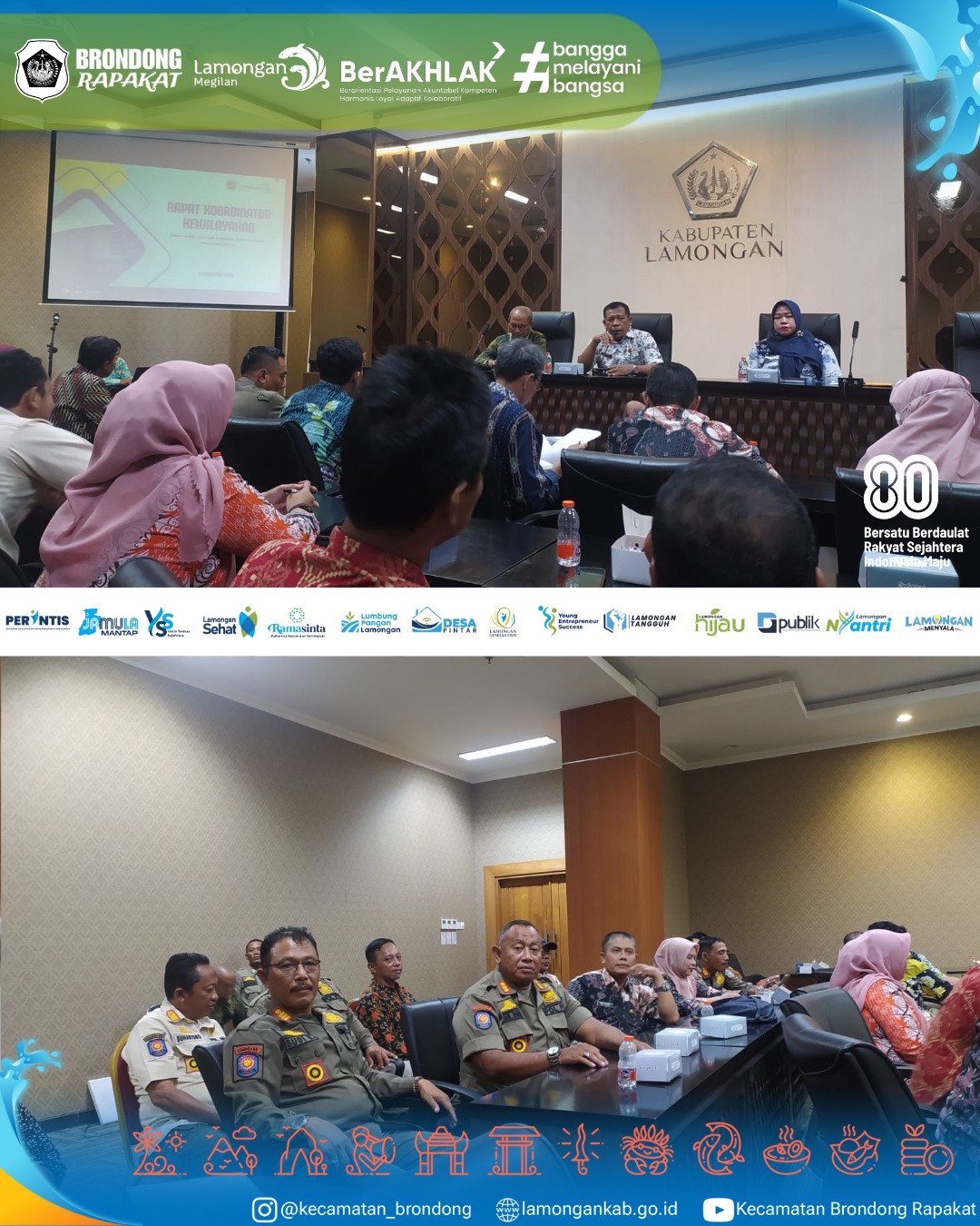 Kamis, 11 Desember 2025 di Ruang Airlangga Pemerintah Kabupaten Lamongan, Kecamatan Brondong melalui jajaran Trantibum dan Kasi Pemerintahan mengikuti rapat koordinasi yang digelar untuk membahas penguatan langkah pengamanan sebagai upaya memastikan ketertiban umum menjelang perayaan Natal dan Tahun Baru di seluruh wilayah Lamongan, agar di mana pelaksanaan pengamanan nantinya berjalan lebih terpadu, efektif, dan kondusif bagi masyarakat.
