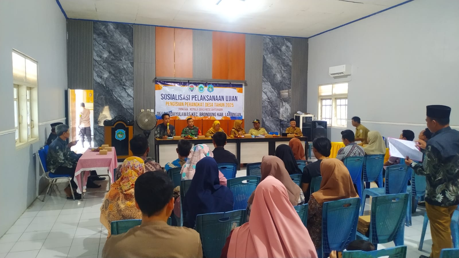 Senin, 15 Desember 2025, di Balai Desa Sedayulawas, Kecamatan Brondong, dilaksanakan Sosialisasi Pelaksanaan Ujian Pengisian Perangkat Desa Tahun 2025 untuk Jabatan Kepala Seksi Kesejahteraan yang dihadiri oleh Ibu Camat Brondong, jajaran Forkopimcam, serta Kasi Pemerintahan Kecamatan Brondong, sebagai upaya memberikan pemahaman yang jelas dan menyeluruh kepada panitia, calon peserta, dan pihak terkait mengenai tahapan, ketentuan, serta mekanisme pelaksanaan ujian, sehingga proses pengisian perangkat desa dapat berjalan transparan, objektif, dan sesuai peraturan, yang disampaikan melalui pemaparan materi, diskusi, serta tanya jawab secara terbuka dalam suasana tertib dan kondusif.