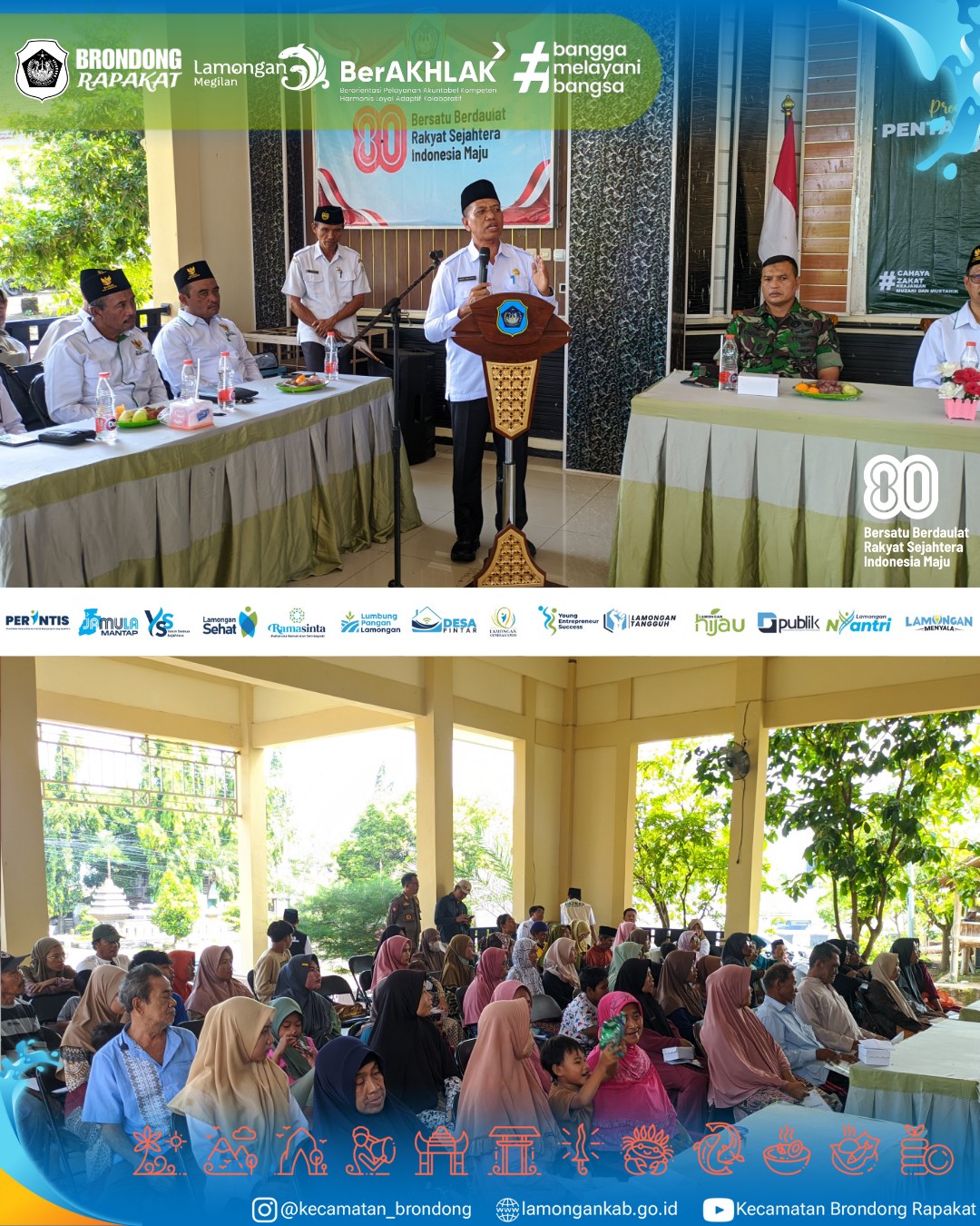 Rabu, 24 Desember 2025, di Pendopo Kecamatan Brondong, telah dilaksanakan Program Lamongan Peduli yang dirangkai dengan sosialisasi Zakat, Infak, dan Sedekah (ZIS) serta pentasharufan bantuan kepada 1 desa dengan 6 mustahik se-Kabupaten Lamongan Semester II Tahun 2025, yang diikuti oleh Ibu Camat Brondong bersama jajaran Forkopimcam dan dihadiri oleh Sekretaris Daerah Kabupaten Lamongan, sebagai upaya memperkuat kepedulian sosial, meningkatkan pemahaman masyarakat tentang pengelolaan ZIS, serta memastikan bantuan tersalurkan tepat sasaran, di mana kegiatan dilaksanakan secara tertib dan transparan melalui pemaparan program, sosialisasi, dan penyerahan bantuan, sehingga diharapkan mampu mendorong solidaritas sosial dan kesejahteraan masyarakat secara berkelanjutan.