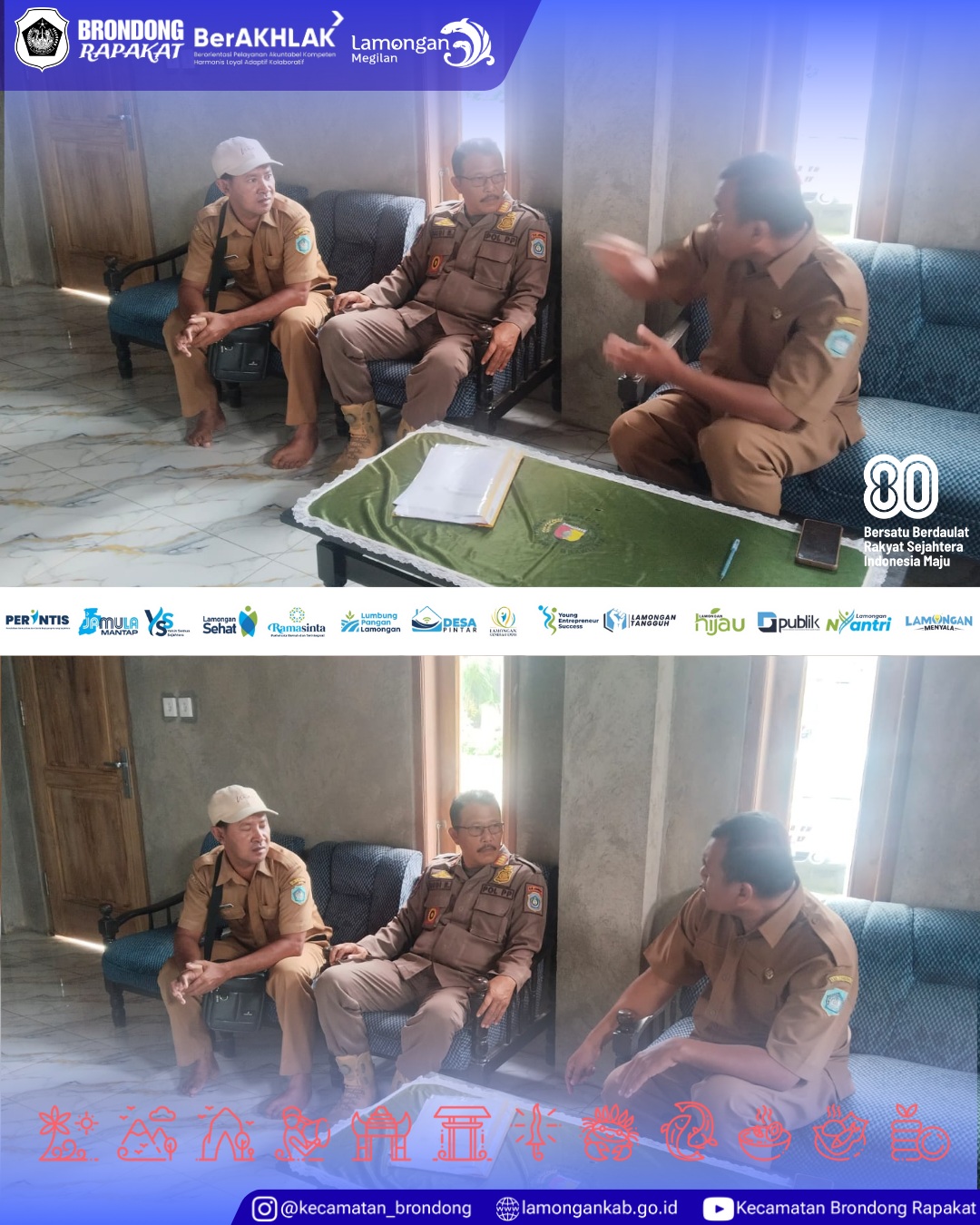 5 Januari 2025, di Kantor Balai Desa Labuhan, Kasi Trantibum Kecamatan Brondong bersama staf PPM melaksanakan kegiatan koordinasi dengan Kepala Desa Labuhan sebagai bagian dari upaya penguatan sinergi antara pemerintah kecamatan dan pemerintah desa.
