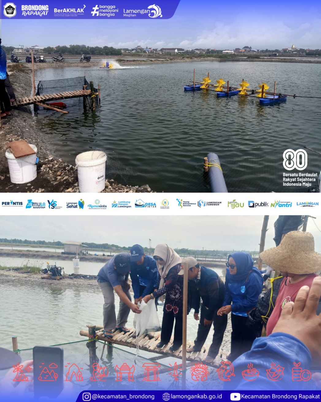 Sabtu, 10 Januari 2025, di lokasi Unit Usaha Budidaya Ikan Kerapu Desa Labuhan, Kecamatan Brondong, dilaksanakan kegiatan penebaran benih ikan kerapu sebagai bagian dari Program Ketahanan Pangan yang bersumber dari Dana Desa Tahun 2025. Kegiatan ini diresmikan oleh Ibu Camat Brondong, Nurul Khumaidah, S.H., M.M., serta dihadiri oleh perangkat desa dan para pelaku usaha budidaya perikanan setempat.