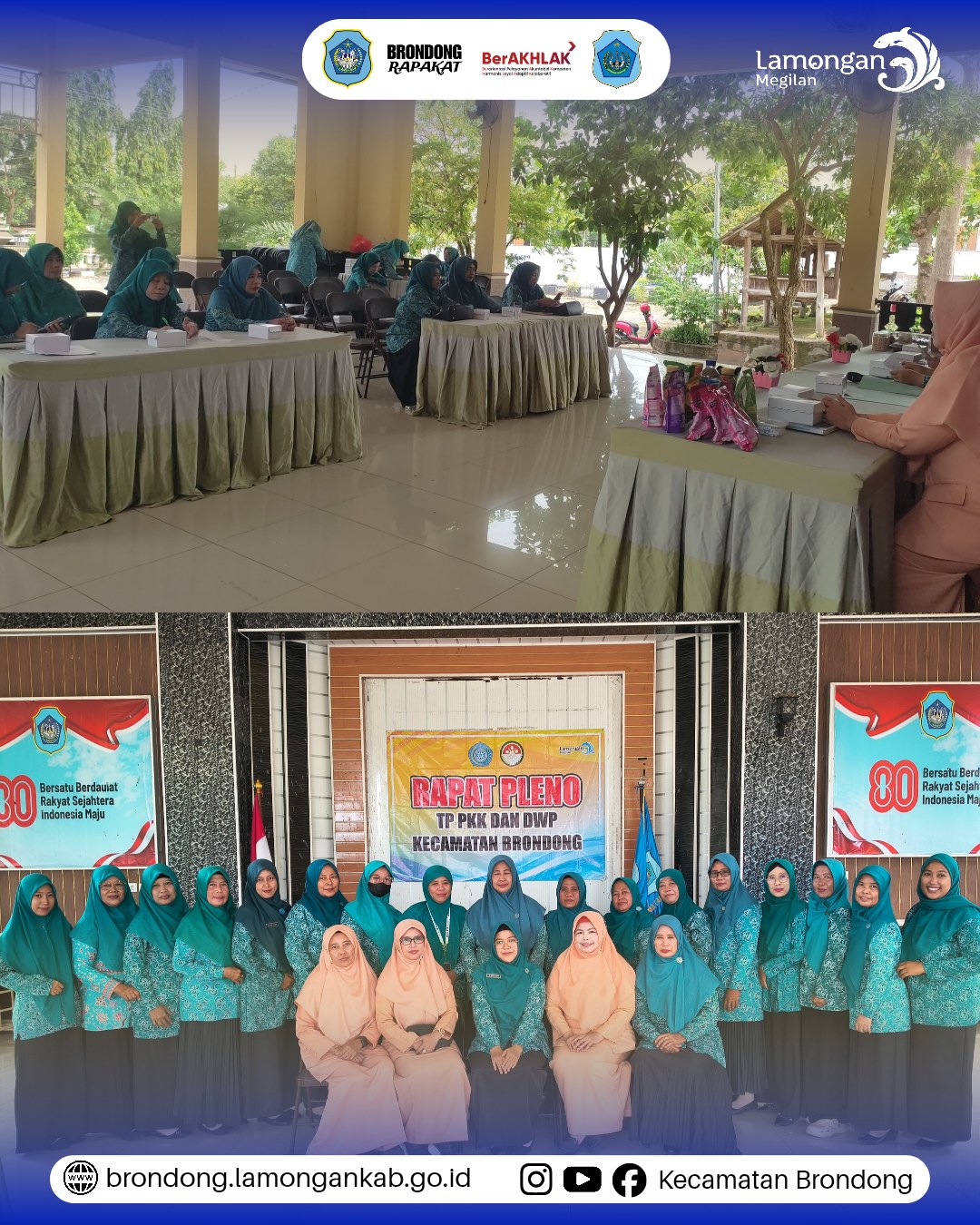 Rabu, 21 Januari 2026, bertempat di Pendopo Kecamatan Brondong, dilaksanakan Rapat Pleno Tim Penggerak Pemberdayaan dan Kesejahteraan Keluarga (TP PKK) dan Dharma Wanita Persatuan (DWP) Kecamatan Brondong. Kegiatan ini diikuti oleh jajaran pengurus TP PKK dan DWP Kecamatan Brondong serta dipimpin langsung oleh istri Sekretaris Camat (Sekcam) Brondong sebagai pimpinan rapat.