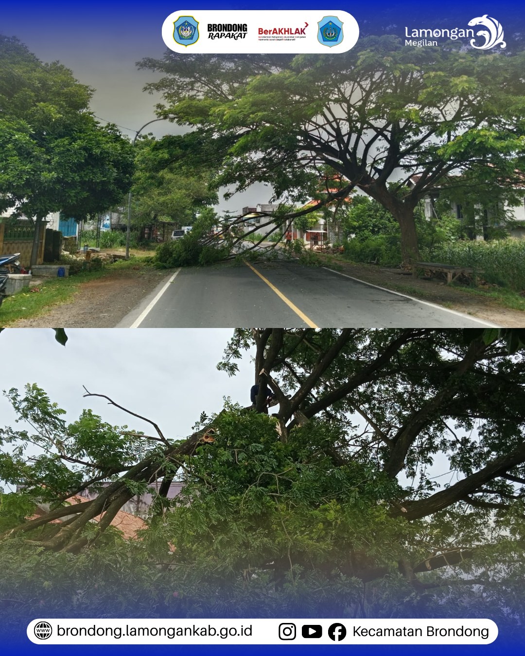 Jumat, 23 Januari 2026, bertempat di Dusun Ganting, Desa Lohgung, Kecamatan Brondong, telah dilaksanakan kegiatan perapian pohon oleh Kasi Ketenteraman dan Ketertiban Umum (Trantibum) Kecamatan Brondong bersama perangkat Desa Lohgung. Kegiatan ini dilakukan sebagai upaya penataan lingkungan serta antisipasi potensi bahaya akibat pohon yang rimbun dan rawan tumbang di sekitar permukiman dan akses jalan warga.
