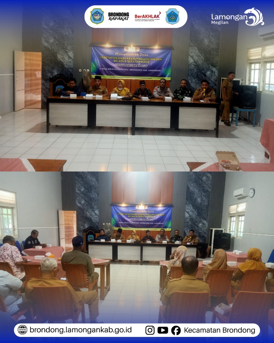 Senin, 26 Januari 2026, bertempat di Balai Desa Sedayulawas, Pemerintah Desa Sedayulawas menyelenggarakan Musyawarah Desa (Musdes) Pembahasan Anggaran Pendapatan dan Belanja Desa (APBDes). Kegiatan ini dihadiri oleh Sekretaris Camat Brondong, Kasi Pemerintahan, Kasi PPM, Kepala Desa Sedayulawas, perangkat desa, pendamping desa, serta Badan Permusyawaratan Desa (BPD) sebagai forum resmi untuk membahas dan menyepakati arah pengelolaan keuangan desa.
