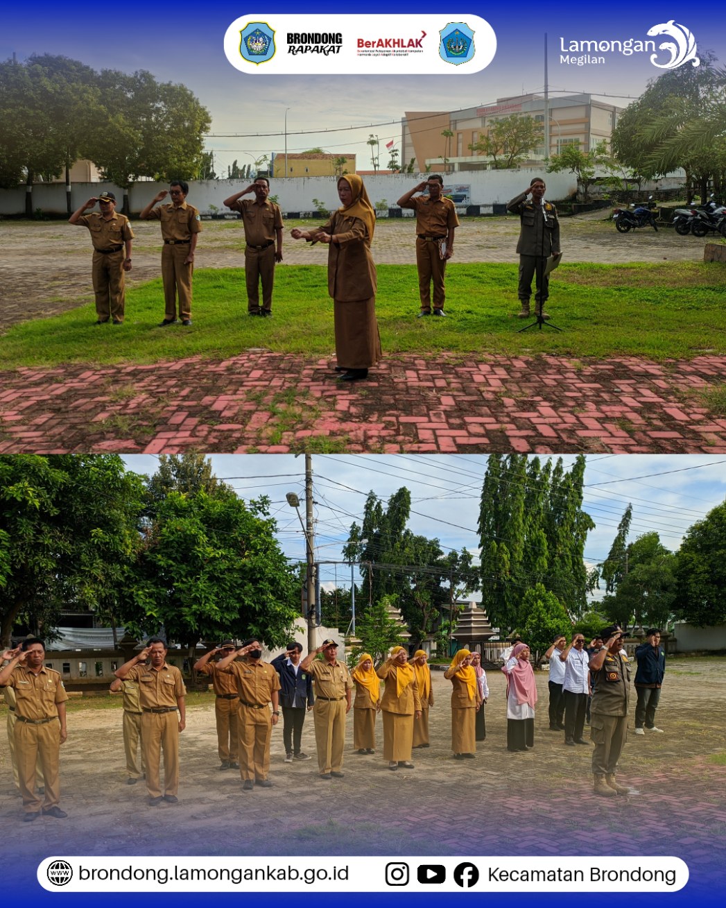 Senin, 2 Februari 2026, di halaman Kecamatan Brondong, Pemerintah Kecamatan Brondong melaksanakan apel pagi bersama OPD Kecamatan Brondong, Kelurahan Brondong, serta para pendamping PKH yang dipimpin oleh Pembina Apel Kasi Pemerintahan, di mana beliau menyampaikan amanat dari Ibu Camat Brondong, Nurul Khumaidah, S.H., M.M., bahwa setiap pegawai wajib melaksanakan tugas dan tanggung jawab sesuai dengan tupoksi masing-masing sebagai bentuk komitmen dalam meningkatkan kedisiplinan, profesionalisme, dan kualitas pelayanan kepada masyarakat, sehingga kegiatan apel pagi ini menjadi sarana koordinasi dan penguatan semangat kerja bersama demi terwujudnya tata kelola pemerintahan yang lebih baik di wilayah Kecamatan Brondong.