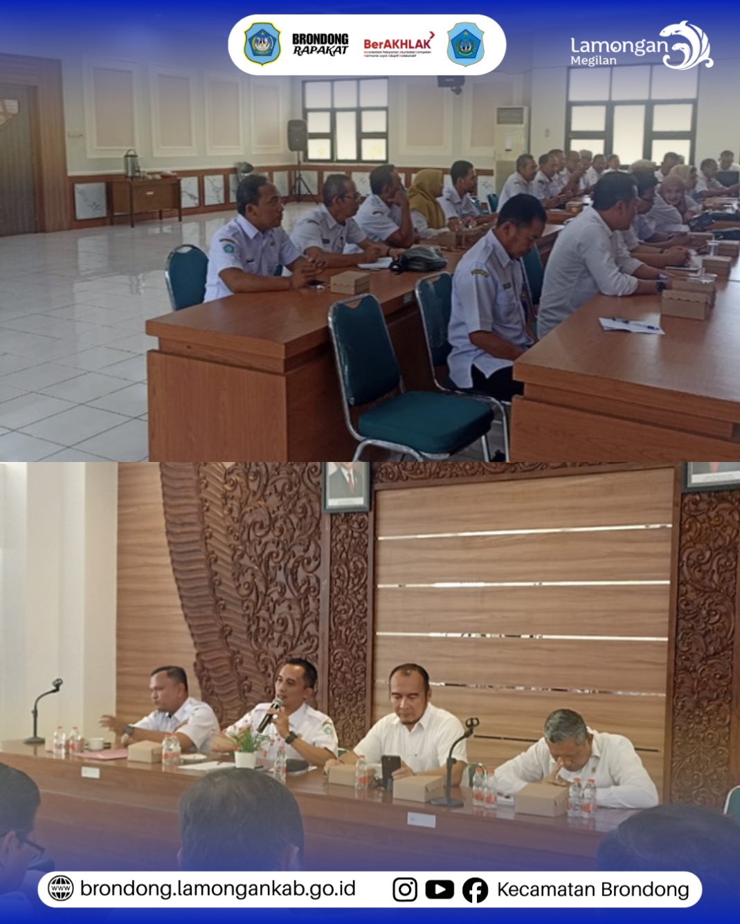 Rabu, 11 Februari 2026, di Aula Sasana Abdi Praja Dinas Pemberdayaan Masyarakat dan Desa (PMD) Kabupaten Lamongan, dilaksanakan rapat koordinasi yang dipimpin langsung oleh Kepala Dinas PMD Kabupaten Lamongan dan diikuti oleh perwakilan kecamatan se-Kabupaten Lamongan, di mana Kecamatan Brondong diwakili oleh Sekretaris Camat (Sekcam), guna membahas koordinasi, sinkronisasi, serta penguatan pelaksanaan program pemberdayaan dan pemerintahan desa, sebagai upaya meningkatkan kualitas tata kelola desa dan pelayanan kepada masyarakat, yang dilaksanakan melalui penyampaian arahan kepala dinas, pemaparan kebijakan terkini, serta diskusi bersama untuk menyamakan langkah pelaksanaan program di tingkat desa dan kecamatan agar berjalan lebih efektif, tepat sasaran, dan berkelanjutan.