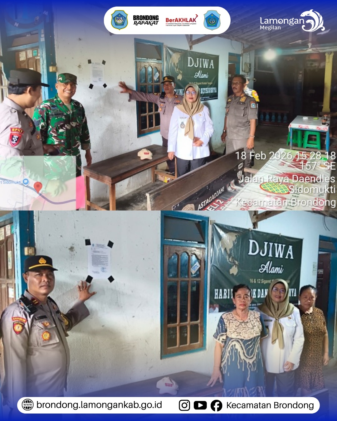 Rabu, 18 Februari 2026, di wilayah Kecamatan Brondong, Camat Brondong Nurul Khumaidah, S.H., M.M. bersama Forkopimcam dan petugas Trantibum melaksanakan pemasangan pengumuman dalam rangka menjaga ketertiban umum dan ketenteraman masyarakat selama Bulan Ramadhan, sebagai langkah preventif untuk mengingatkan seluruh warga agar mematuhi aturan, menjaga kondusivitas lingkungan, serta menghormati pelaksanaan ibadah, yang dilakukan dengan cara memasang media pengumuman di titik-titik strategis dan fasilitas umum agar mudah dibaca oleh masyarakat, sehingga tercipta suasana aman, tertib, dan harmonis di seluruh wilayah Brondong selama berlangsungnya kegiatan keagamaan.