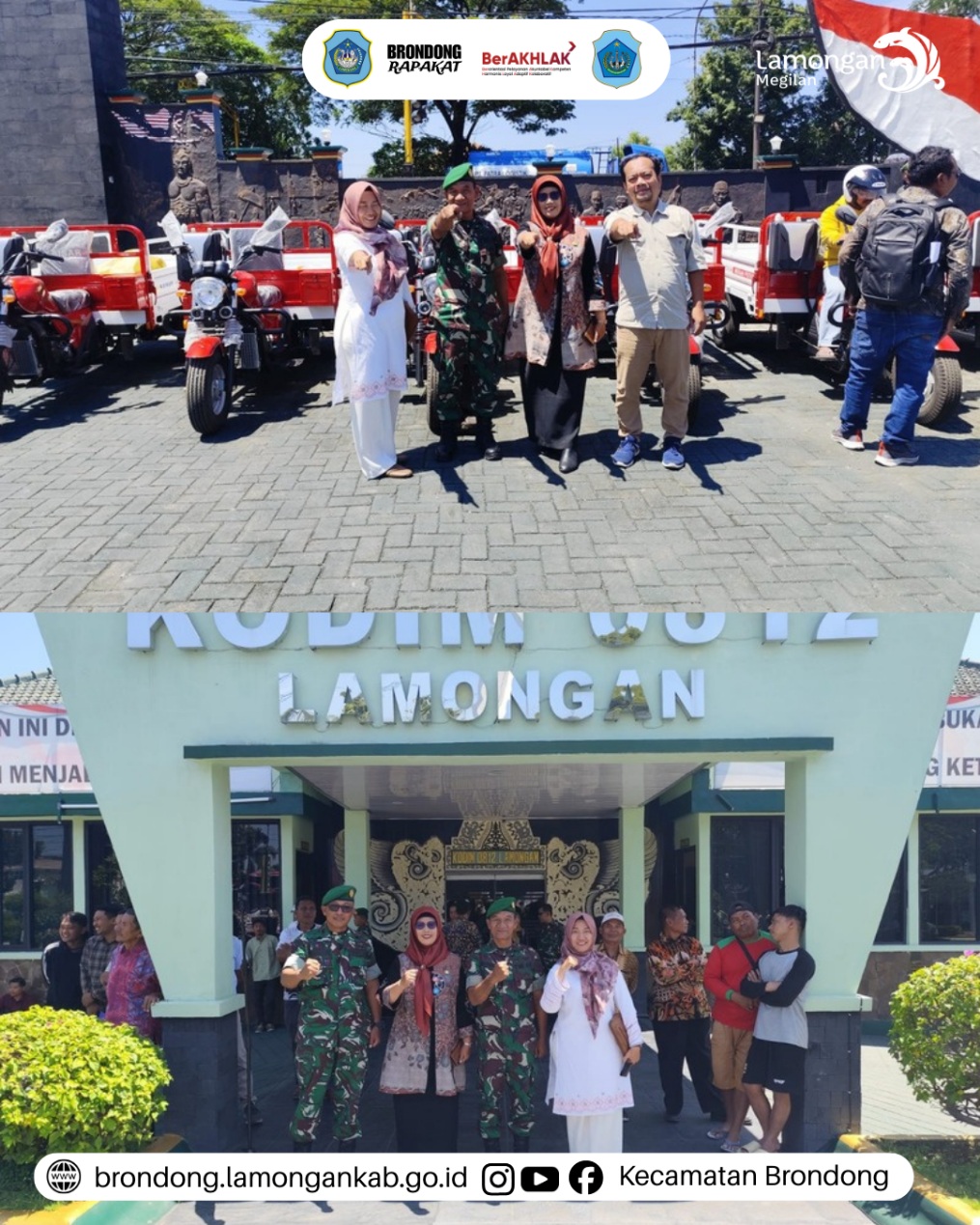 Jum’at, 13 Maret 2026, di Kodim 0812 Kabupaten Lamongan, dilaksanakan kegiatan pendistribusian kelengkapan KDKMP berupa kendaraan roda tiga yang dihadiri oleh Camat Brondong Nurul Khumaidah, S.H., M.M., bersama Kepala Desa Sedayulawas sebagai bentuk dukungan terhadap peningkatan sarana operasional di tingkat desa. Kegiatan ini diselenggarakan oleh pihak terkait sebagai upaya memperkuat fasilitas pendukung pelayanan dan kegiatan masyarakat di wilayah desa. Dalam pelaksanaannya, kendaraan roda tiga tersebut diserahkan secara simbolis kepada perwakilan desa yang hadir untuk kemudian dimanfaatkan dalam menunjang berbagai aktivitas operasional desa, seperti pelayanan masyarakat dan kegiatan pemberdayaan. Melalui pendistribusian ini, diharapkan sarana yang diberikan dapat dimanfaatkan secara optimal sehingga mampu membantu meningkatkan efektivitas pelayanan serta mendukung kelancaran kegiatan pembangunan di Desa Sedayulawas dan wilayah Kecamatan Brondong pada umumnya.