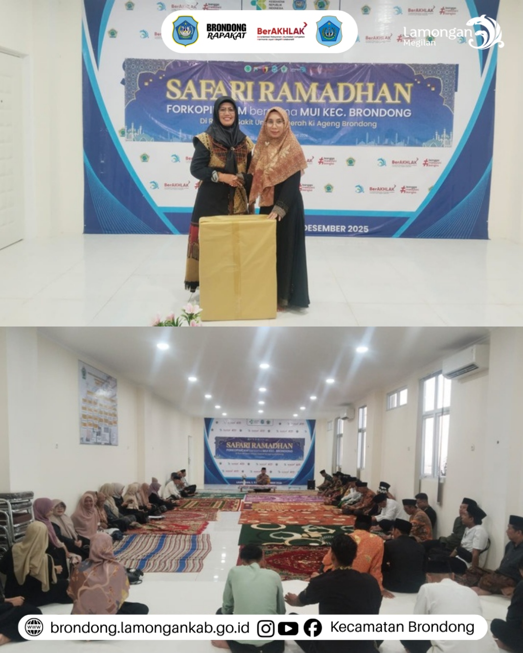 Selasa, 17 Maret 2026, di RSUD Ki Ageng, Kecamatan Brondong, dilaksanakan kegiatan Safari Ramadhan yang diselenggarakan oleh Forkopimcam dan MUI Brondong serta dihadiri oleh Camat Brondong bersama Sekretaris Kecamatan, para Kasi, dan staf sebagai bentuk silaturahmi dan kepedulian sosial di bulan suci. Kegiatan ini bertujuan untuk mempererat hubungan antarinstansi sekaligus berbagi kepada masyarakat yang membutuhkan, dengan menghadirkan unsur Forkopimcam, MUI, serta jajaran Kecamatan Brondong sebagai peserta utama. Acara diawali dengan sambutan dari Forkopimcam yang menekankan pentingnya kebersamaan dan nilai keagamaan, kemudian dilanjutkan dengan penyerahan bantuan berupa kipas angin kepada pihak rumah sakit serta pembagian bantuan sosial dari Baznas kepada masyarakat. Melalui rangkaian kegiatan ini, diharapkan semangat gotong royong dan kepedulian sosial semakin meningkat sehingga tercipta lingkungan yang harmonis dan saling mendukung di wilayah Kecamatan Brondong.