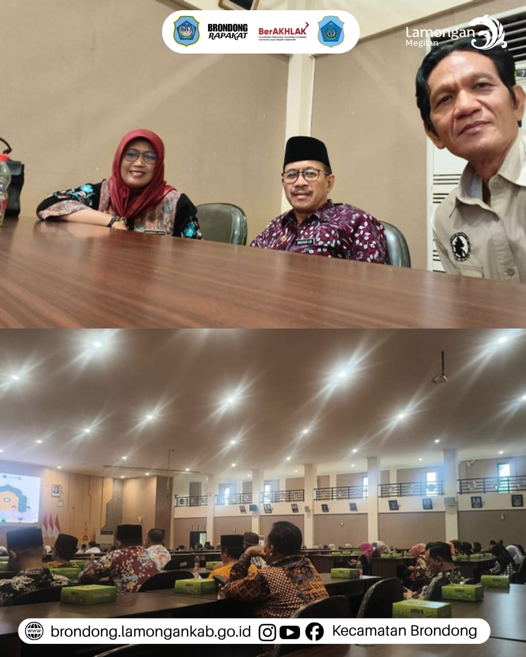 Kamis, 26 Maret 2026, di Ruang Rapat Paripurna DPRD Kabupaten Lamongan, dilaksanakan kegiatan Halal Bihalal 1447 H yang diselenggarakan oleh pimpinan Dewan Perwakilan Rakyat Daerah (DPRD) Kabupaten Lamongan dan diikuti oleh Bupati, Wakil Bupati, Forkopimda, serta seluruh Kepala OPD se-Kabupaten Lamongan, dengan turut dihadiri Camat Brondong sebagai bagian dari unsur pemerintah kecamatan. Kegiatan ini bertujuan untuk mempererat silaturahmi serta memperkuat sinergi antarpemangku kepentingan dalam penyelenggaraan pemerintahan dan pelayanan kepada masyarakat pasca Hari Raya Idul Fitri. Dalam pelaksanaannya, acara diawali dengan sambutan dari Bupati Lamongan, kemudian dilanjutkan dengan rangkaian kegiatan ramah tamah dan saling bersalaman sebagai wujud saling memaafkan. Melalui kegiatan ini diharapkan terjalin hubungan kerja yang semakin solid dan harmonis dalam mendukung pembangunan di Kabupaten Lamongan.